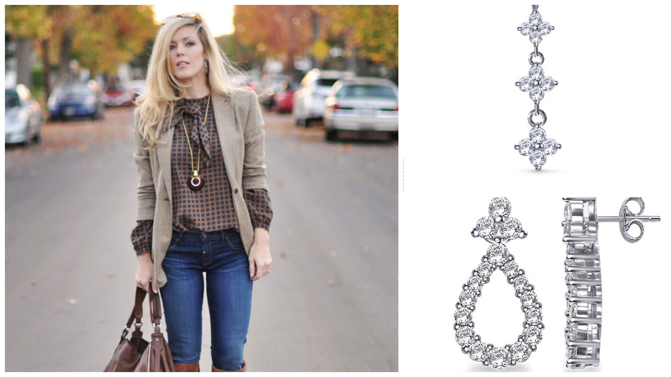 If you're spending the day with friends, eating pecan pie and watching TV is the priority. You'll want a comfy, yet cute outfit for this occasion. A plaid shirt paired with a skirt and booties is a look we love. It's very comfortable and yet it feels like you 'dressed up' for the holiday. You can accessorize the outfit with tights in bright shades, a scarf or a belt. Add our Garnet and Diamond Earrings and you're set for a lovely evening spent with friends. Simple diamond studs are also a great choice for this outfit.